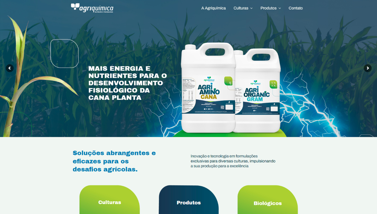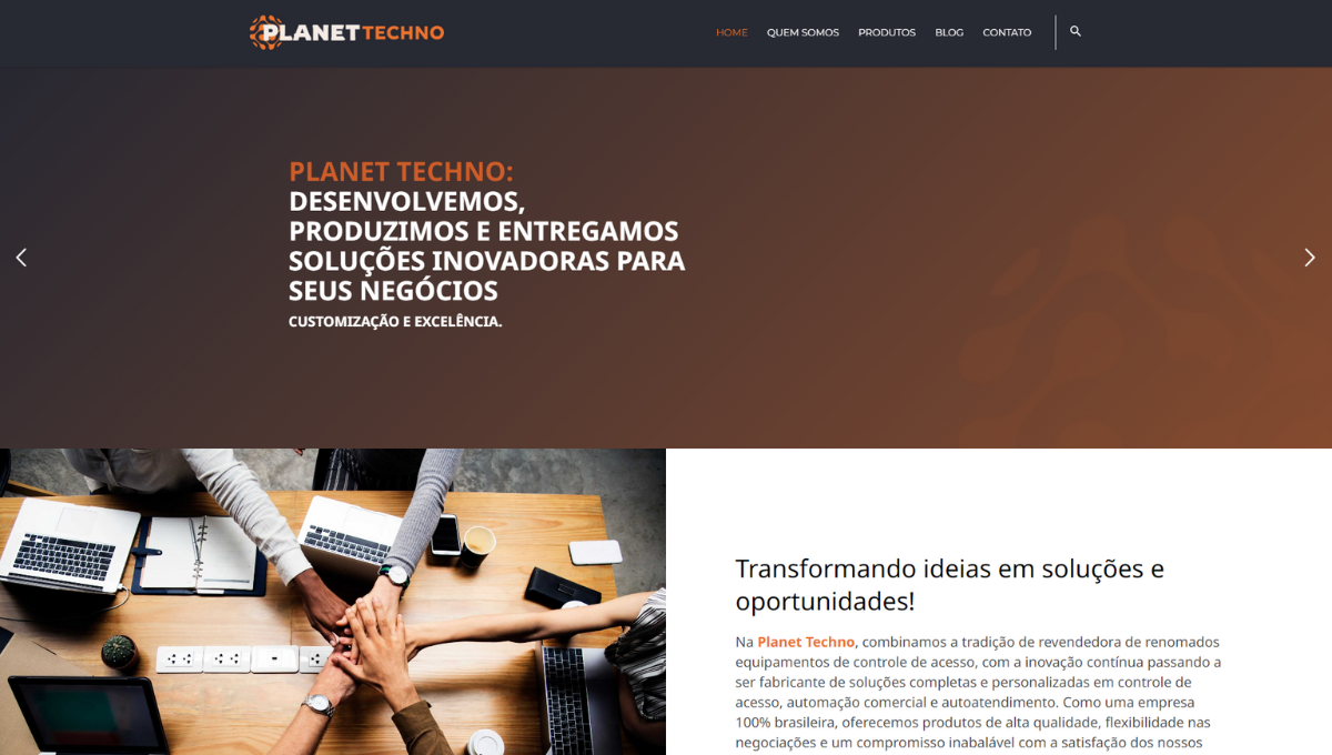 Site institucional com portfólio de produtos construído com WordPress e Elementor.